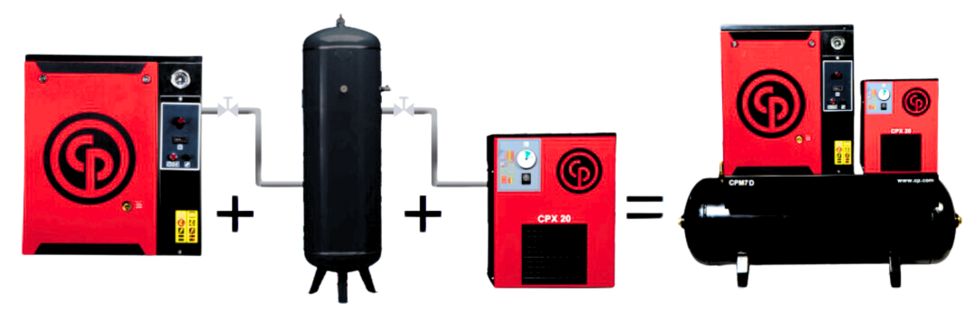 Compact dimensions Ideal for tire shops, maintenance shops, vehicle body or paint shops, and automotive dealers, the CPM can offer you a complete unit (with dryer and 200L receiver) on just 1m2. Easily fits into any free space.